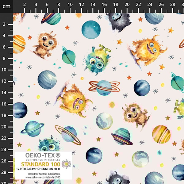 Bomuldsjersey med monstre på lys bund