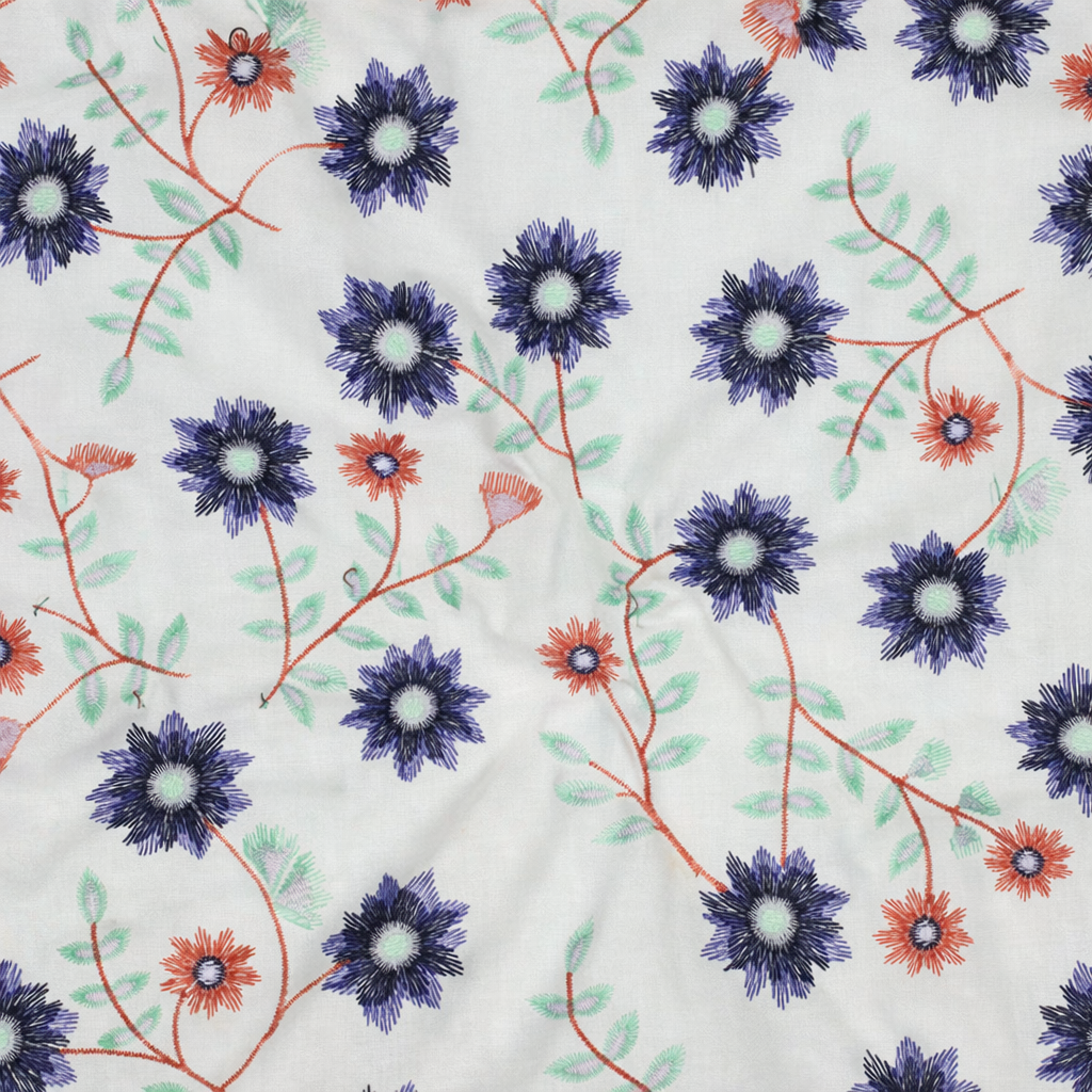 Hvid bomuld med broderede blomster