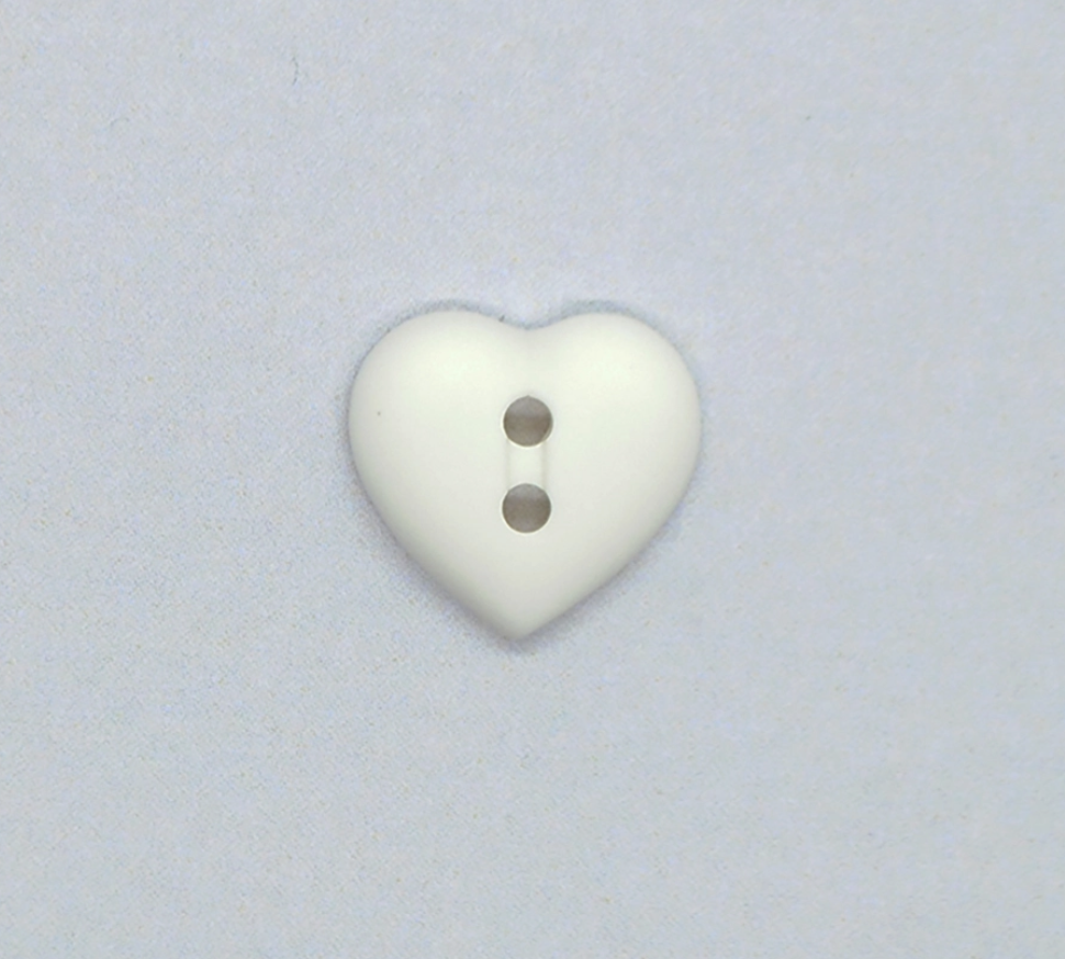 Knapper 2 huls 12 mm hjerte hvid