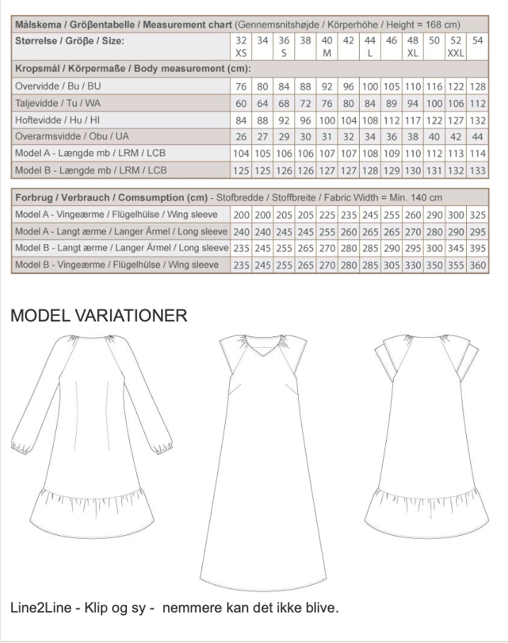 | Line2Line snitmønster K2289 Raglankjole med pufærmer og v-hals til fast stof. Niveau: Medium. |