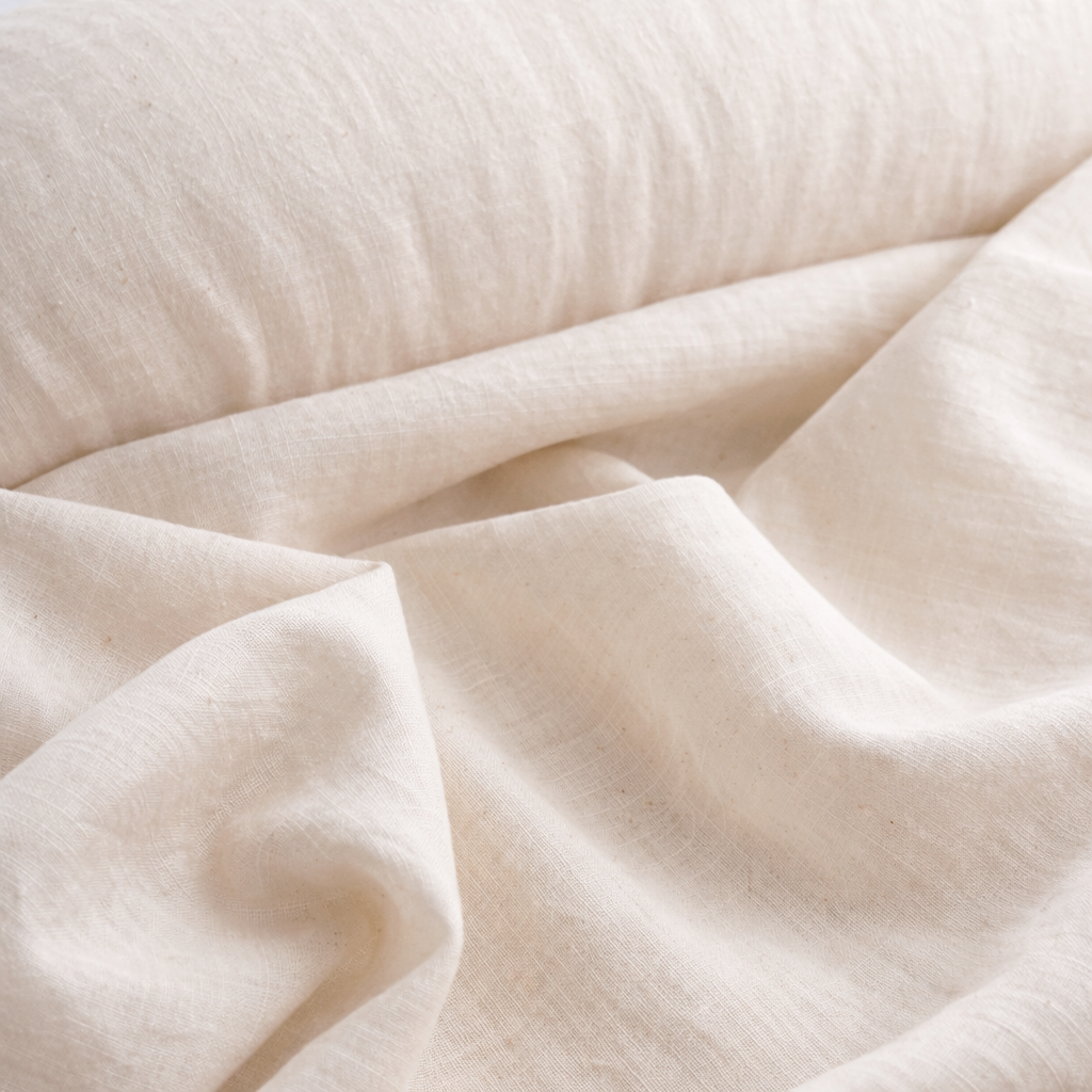 Kvalitet: 89% hør 11% bomuld Bredde: 132 cm Vægt: 170 gram/m2