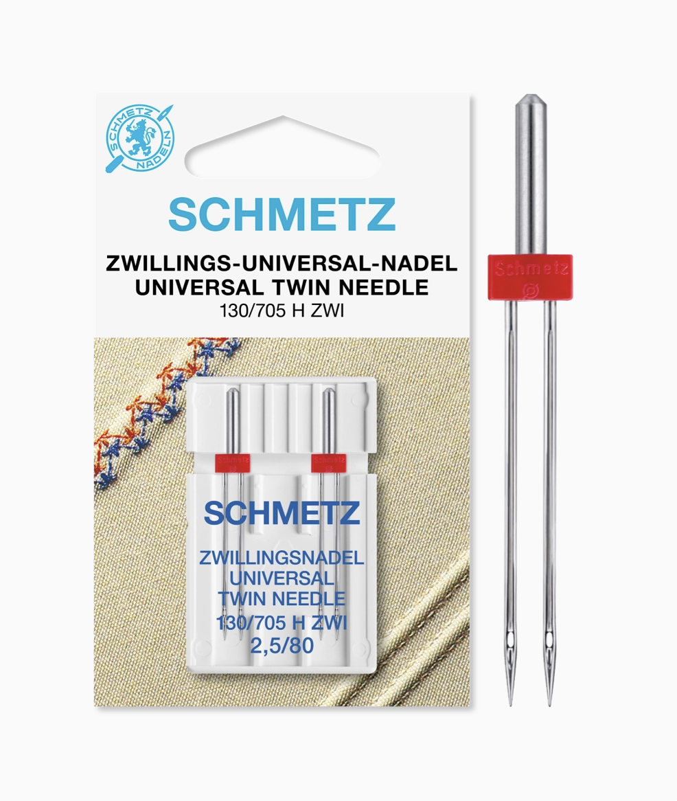 Samme nål som universalnålen, men med to nåle som tillader dobbeltsting og giver mulighed for at lave dekorative sømme med flere farver. Universalnålen kan bruges i mange typer af materiale.