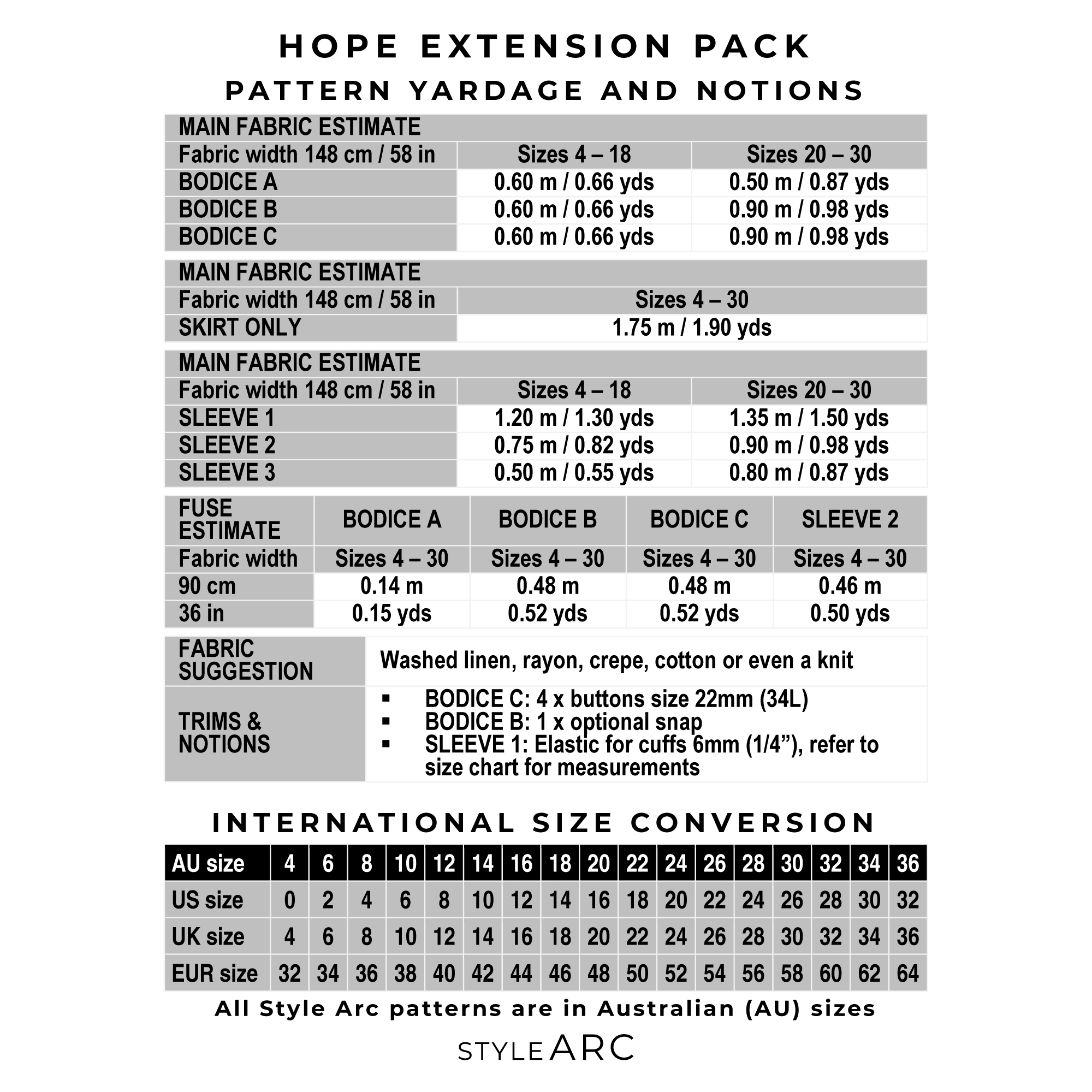 Style Arc | Hope Extension Pack str. 10-22 (EU 38 – 50)