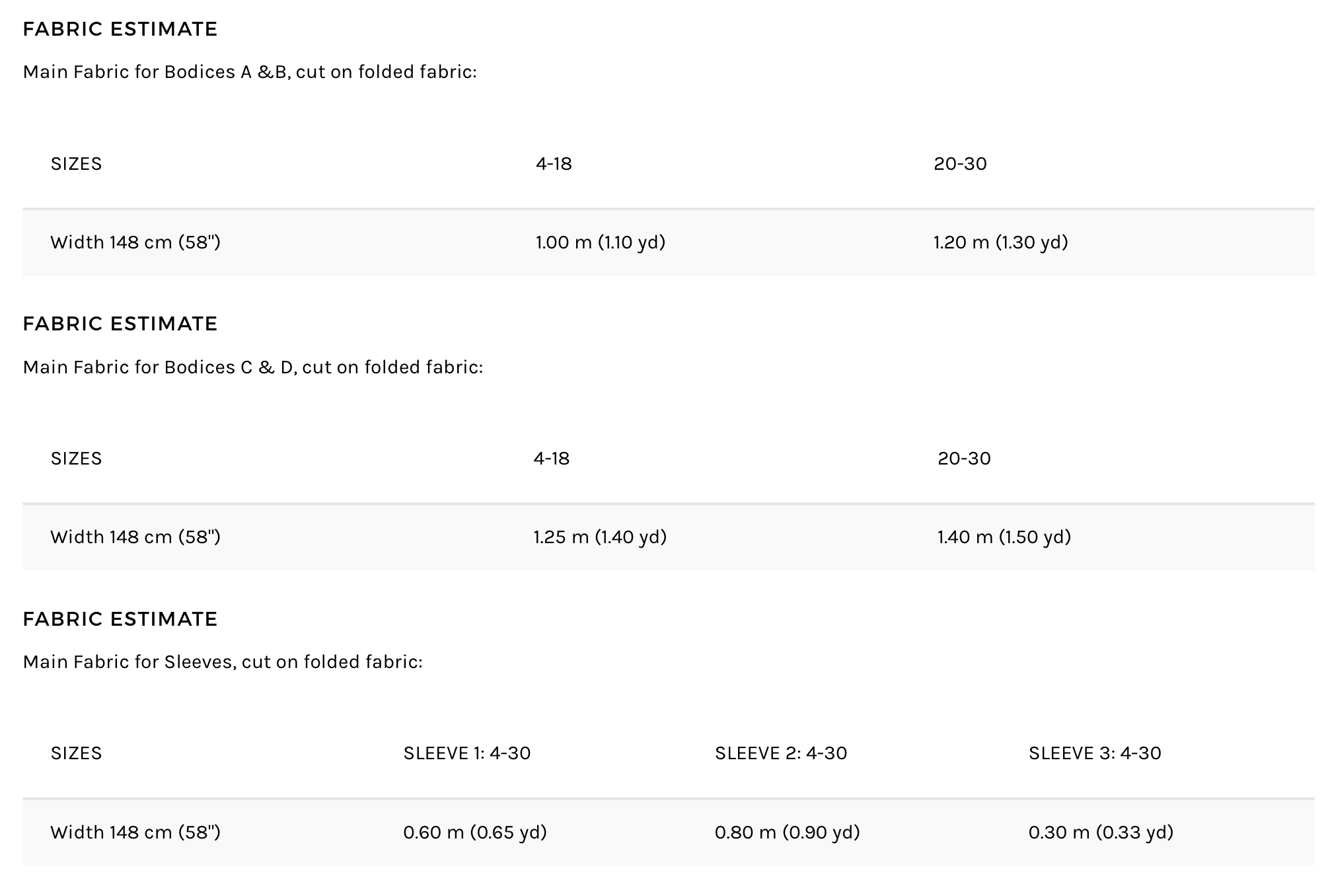 Alle ærmevarianter kan kombineres med overdel A, B eller C.