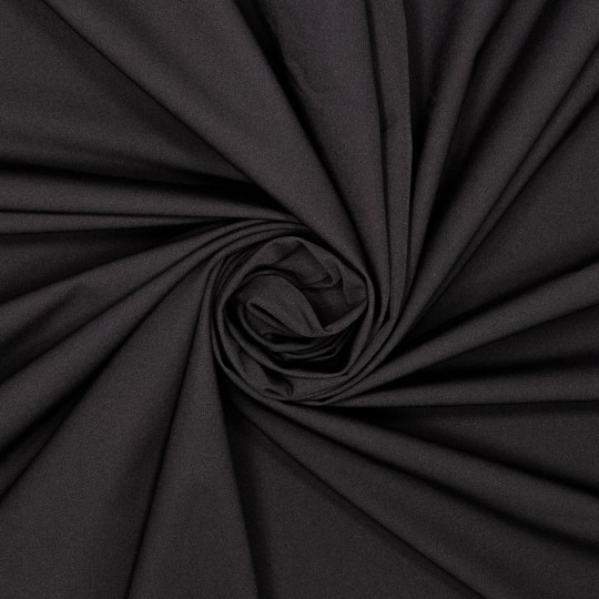 Den sorte farve er klassisk og alsidig, hvilket gør stoffet velegnet til både praktiske og mere elegante formål. Stoffets let glatte overflade giver et rent og moderne udtryk, mens den tætte vævning sikrer en subtil struktur, der gør det visuelt interessant.
